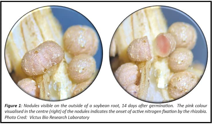 are encapsulated in the centre of the nodule, with a pink centre being a good indicator for active nitrogen fixation (Figure 1).